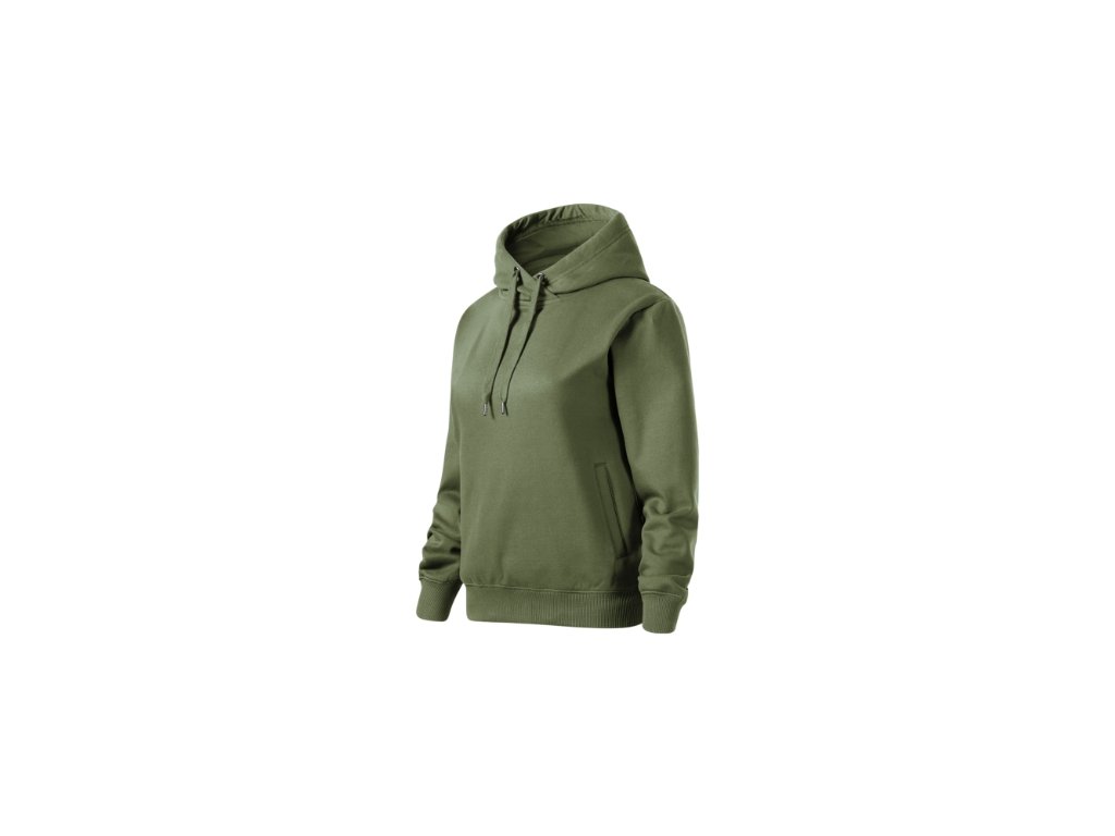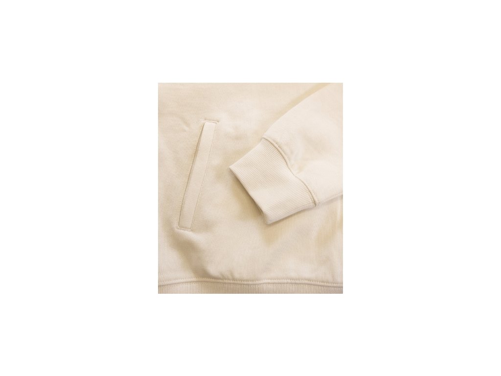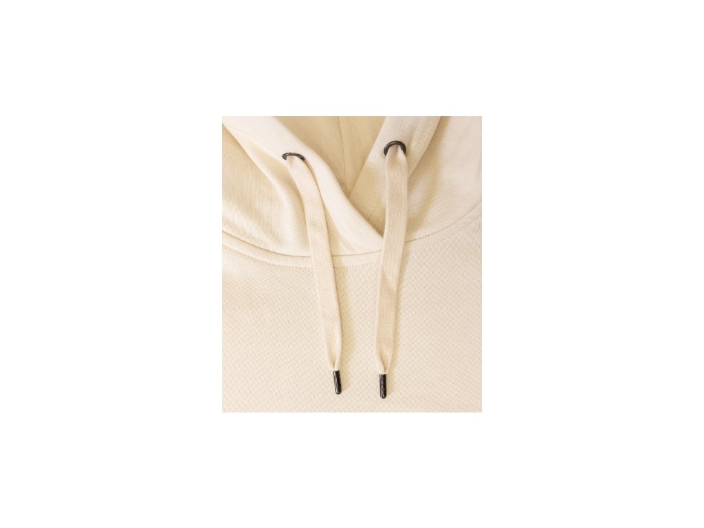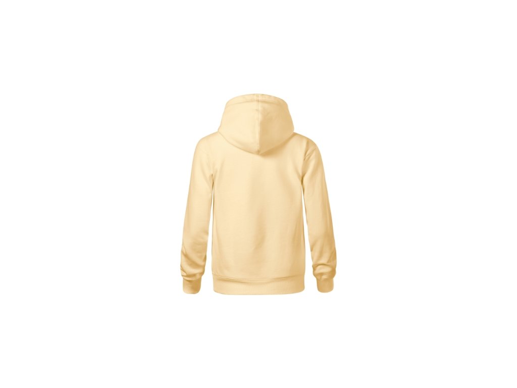 bez etikety - připraveno na rebranding, volný střih s bočními švy, kapuce s podšívkou, na stažení šňůrkou, neutrální velikostní štítek v boční části průkrčníku, vnitřní část průkrčníku začištěna páskou v barvě vrchového materiálu, nízkohlavicové rukávy, lištové kapsy ve stylu klokanky, dolní lem a manžety rukávů z žebrového úpletu 2:2 s 5 % elastanu, vnitřní strana počesaná