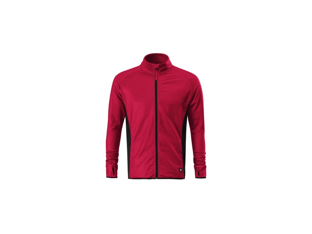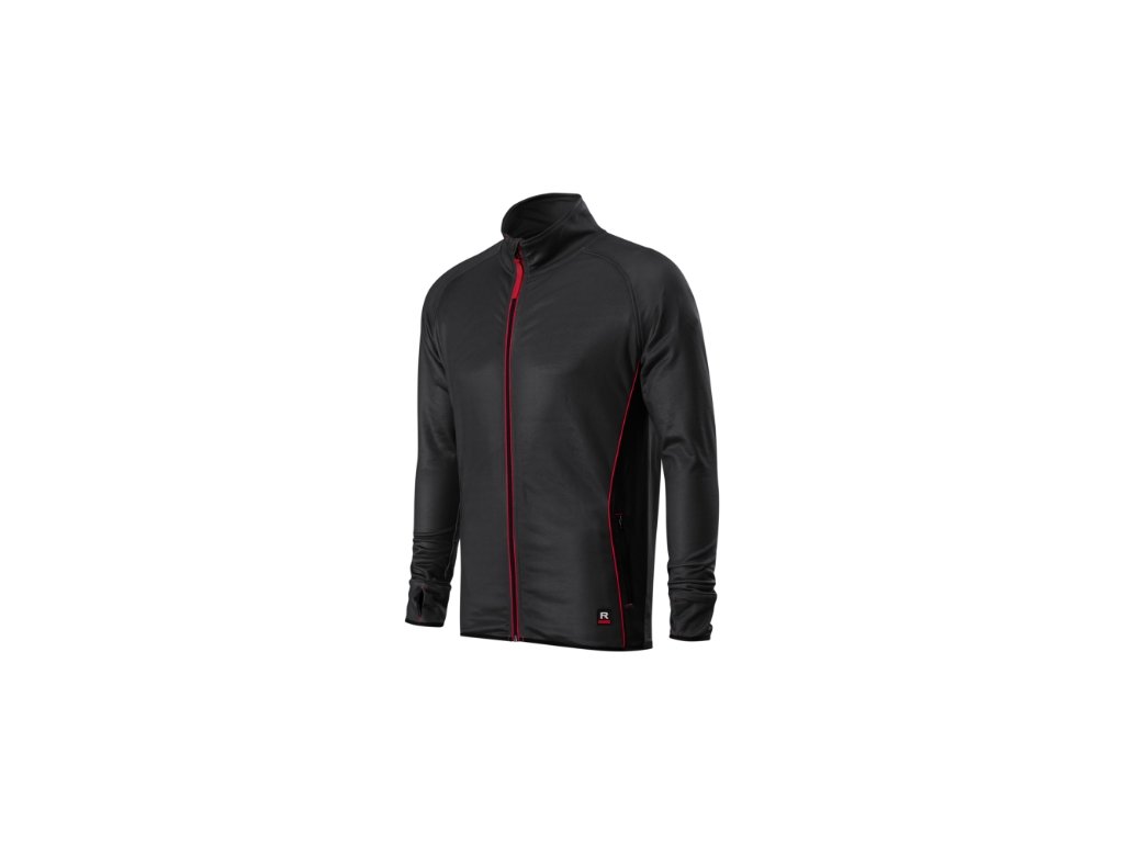hladký strečový rychleschnoucí materiál, rovný střih s bočními švy, celopropínací reverzní spirálový zip s krytkou brady, vnitřní průkrčník začištěn páskou , raglánové rukávy, manžety s otvorem pro palec, kapsy na zip, lemování elastickým proužkem, kontrastní prvky, poutko na zavěšení
